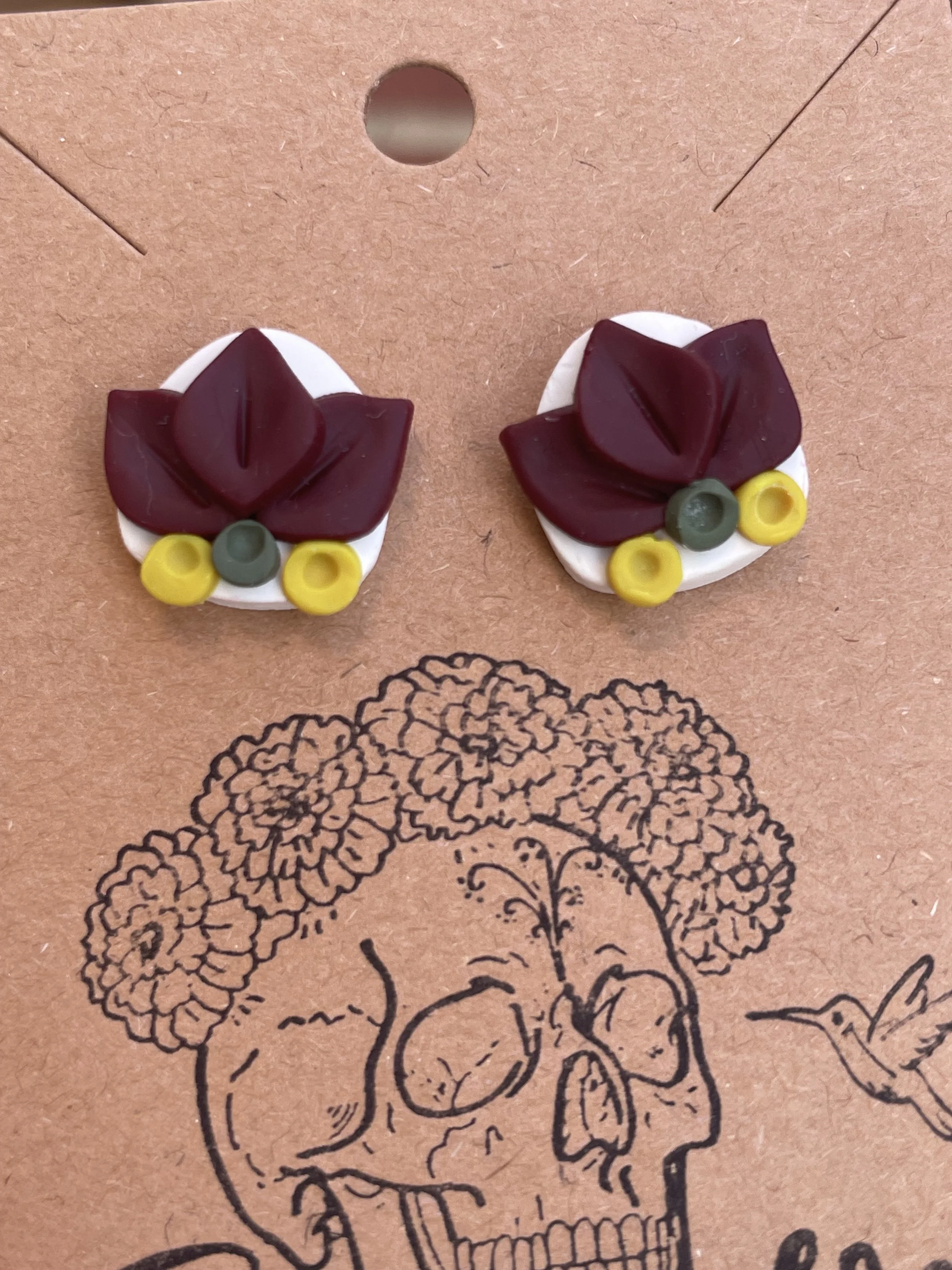 Shop Categories: All Fall Hoops Studlies Abstracts Halloween All | Fall | Hoops | Studlies | Abstracts | Halloween | Maroon Crown Studlies $15.00 Citrus Drops $25.00 Date Night Reds $30.00 Emerald Teardrop Studlies $10.00 Pink Lady Studlies $15.00 Pink Baby Deleon Studlies $15.00 Two Ears, Tulips $15.00 Goldie Hexagon Studlies $15.00 Sunny Day $30.00 Hola Señorita $30.00 Marble Greens B $10.00 Marble Greens A $10.00 Hyacinth Pastels $20.00 Rosey Posies $20.00 Purple Polka Dot $15.00 Golden Leaves Falling Down $15.00 Leafy Greens $10.00 Purple Rain $15.00 Pastel Studlies $10.00 O'Keefe Studlies $15.00 Lemony Snicket Studlies $20.00 Fall's Bounty $35.00 Heal the World Baubles $10.00 Pottery Jug Studlies $15.00 Dragon Mouth Baubles $10.00 Texas Rose Studlies $15.00 Lacey Anne $25.00 Desert Rose $30.00 White Leafy Thing on Maroon Marble Studlies $10.00 Painted Rose $30.00 Sienna Hibiscus Studlies $20.00 Pink Brew $20.00 Pinky or Greenie Cats $10.00 Pink Bow Ladies $20.00 All Dressed Up $20.00 Wednesday Windows $20.00 Here Lies My Last Fuuu $20.00 Who You Lookin At? $20.00 Crow Gents $20.00 Candy Corn Bouquet $30.00 Black Wish $25.00 Black Lilies $25.00 Candy Corn Death $30.00 Fu-caw-f $15.00 Baby Pumpkin Studlies $20.00 Come Here Little Girl $20.00 Fall Leaves $10.00 Candy Corn Tombstone $20.00 I'm Growin Here $25.00 Safari Baubles $10.00 Green Leaves $10.00 Alice's White Roses $20.00 Plum Studlies $15.00 Stoned Flowers $35.00 Brown Leaves $10.00 Yes, It Does Look Like It $10.00 Little Red Flowers $15.00 Glossy Orange Roses $10.00 Sunshine in My Pocket $35.00 Flowers in Bloom $25.00 Leaf Bunch Studlies $15.00 Desert Mint $20.00 One Side Makes You Grow Taller $35.00 Como la Flor Gift Card from $25.00 Deleon's Flower $30.00 Handsome Little Fellas $15.00 Big Ghosties $20.00 Ghostly studs $10.00 Calavera studs B $15.00 Calavera studs A $15.00 Cempasuchil handpainted circles $25.00 They Remember Your Face $25.00 Boo! studs with curvy feet $15.00 They Bite $20.00 Planty hooks $30.00 Hand painted blue teardrops with gold clay border $40.00 Deleon Studlies $20.00 Taupe & Coral circle studs $10.00 Taupe & Coral hexagon studs $10.00 A Good Spore-t $20.00 Harvest spider web $35.00 Fall color flowers $35.00 Abstract rectangles $10.00 Sold out Goldie leaves $15.00 Harvest Festival $20.00 Pink spider web studs $8.00 Skinny striped hoops $10.00 Taupe marble studs $10.00 Terracotta leaf bowl danglies $35.00 Yellow flowers on black danglies $35.00 Holly studs with gold paint accents $15.00 Lavender Lovelies $20.00 Little purple flower studlies $10.00 Blue for You $20.00 Loose leaf paper $15.00 Pink flower studs $10.00 Geo Hexagons, Medium $20.00 Purple Flowers on Teal Drops, Medium $25.00 Yellow studlies $15.00 Carletta Studlies $15.00 Rectangles with Gold Border, small $10.00 Pastel Hoops $20.00 Pink, White, & Mauve Bobbles $10.00 Abstract Purples $15.00